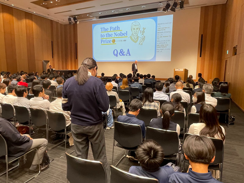 今回の講師は、真核生物におけるイントロンの発見や遺伝子組み換え技術の開発により、1993年にノーベル生理学・医学賞を受賞された Richard J. Roberts(リチャード・J・ロバーツ)先生。世界的な科学者から、研究に挑み続けた道のりや「好きなことを、とことん楽しむ大切さ」など、未来を担う若い世代への熱いメッセージをいただきました。